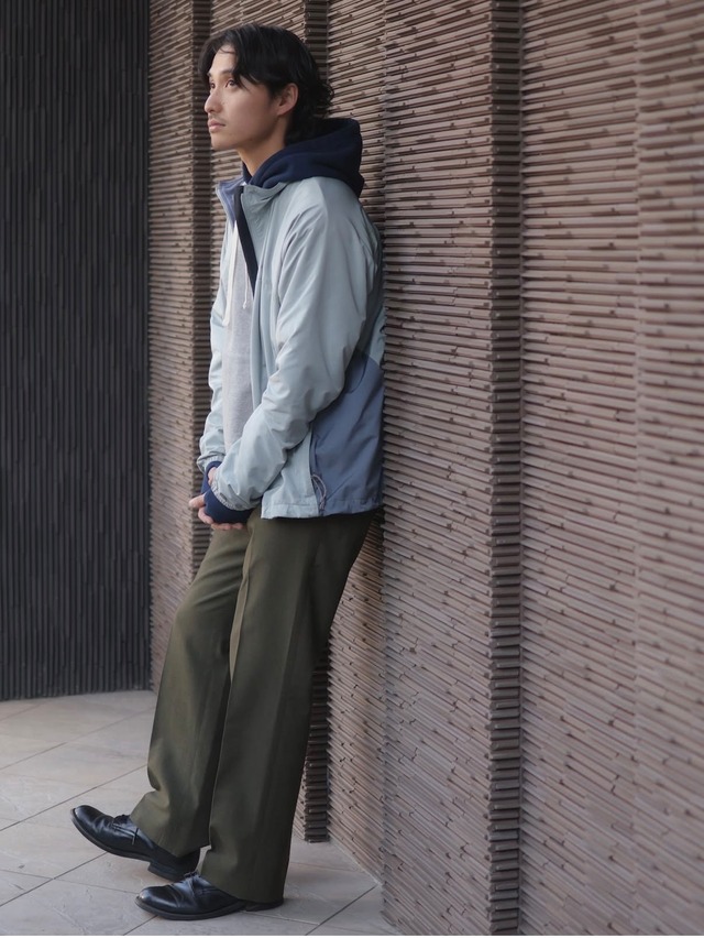 【Item】 “BIRDLAC”TYPE WFS 【Brand】 KYOU 【Price】 ¥79,200(in tax) 【Color】 OLIVEDRAB 【Material】 FACE : Nylon 100% LINING : Polyester 65%/ Cotton 35% RIB : Cotton 50%/ Polyester 50% 【Size(平置き実寸)】 2:肩幅54cm(26.0in)/バスト133cm(52.4in)/着丈66cm(26.0in)/袖丈63cm(24.8in) 【着用】 モデル:173cm/着用:2 【Description】 US NAVYのWINTER FRYING SUITSから着想を得た“BIRDLACE”は、KYOUのミリタリーラインに付与されるプロダクトコード。 とろみと光沢のあるナイロン生地を採用し、裏地には綿タッチのオリジナルライニングを組み合わせることで、独特の風合いを表現。 製品加工では一度湯通し後にタンブラー加工を施し、生地をシュリンクさせ自然なパッカリングを生み、さらにヴィンテージの薄汚れた風合いをスプレーで加えることで、味わい深い表情に仕上げている。 【Notes】 ※採寸は手作業のため、多少の誤差が生じる場合がございます。 ※サイズ違いによる返品・交換は承っておりません。 International orders available.