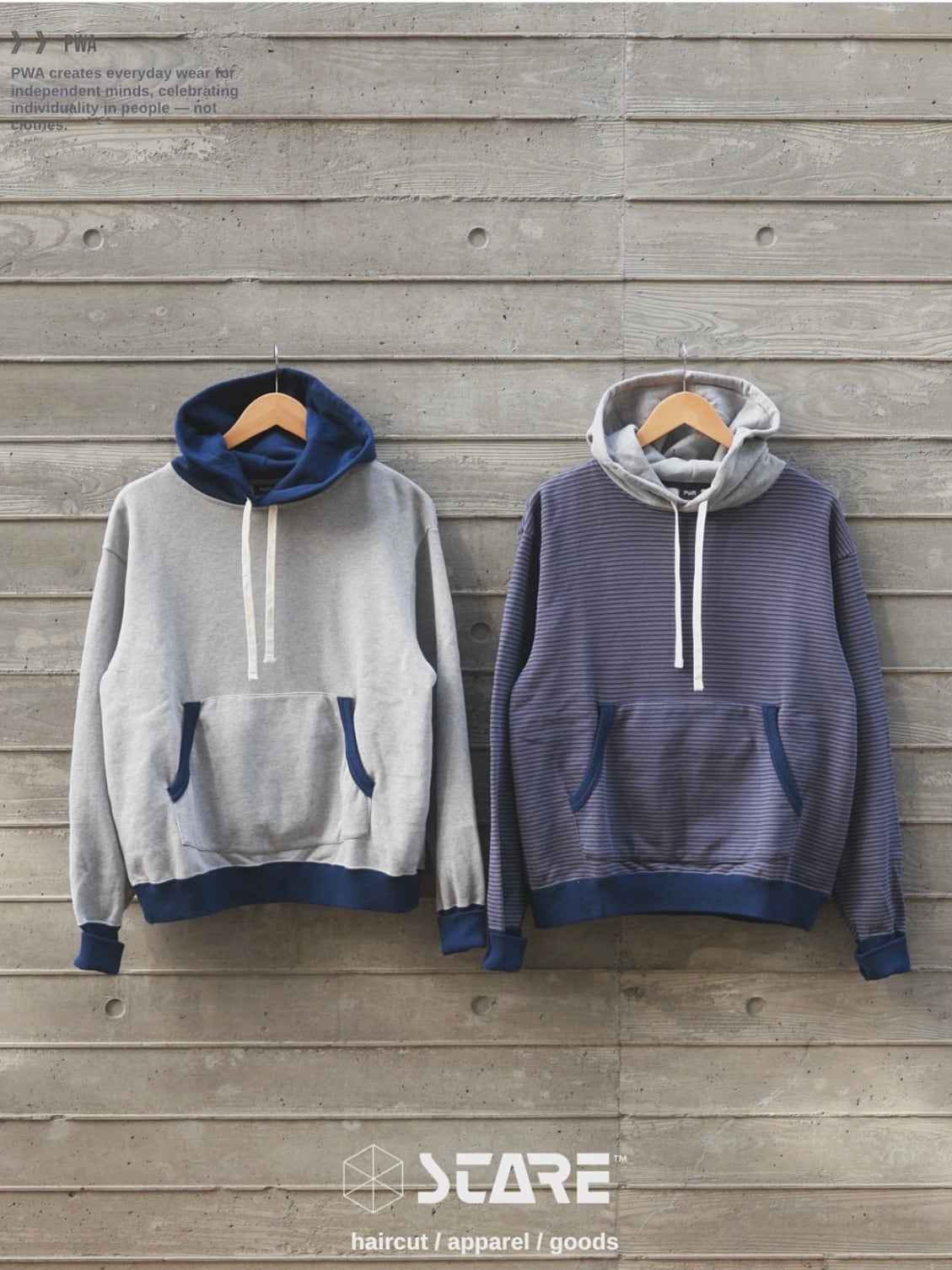 袖口のサムホール付きの長めリブや、カンガルーポケット内側の隠しジップポケットなど、細部の機能性もPWAらしい仕上がりです。