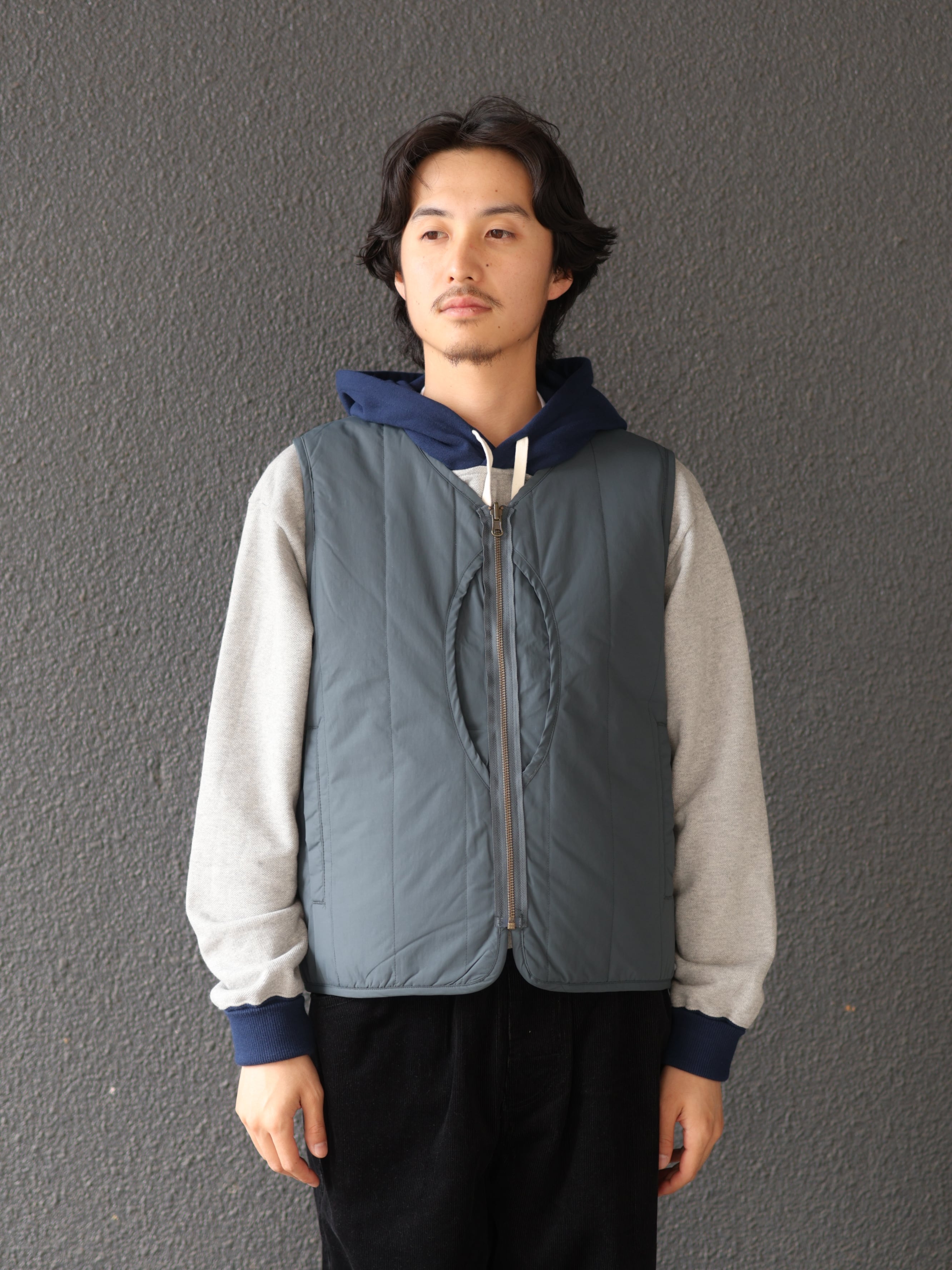 ショルダーラインの傾斜を緩やかにすることで、リラクシングなシルエットを実現。身頃にあしらったハーフムーンポケットは、ナイロン面ではアウターポケット、ウール面では内ポケットとして、どちらの面で着ても機能するように設計されています。