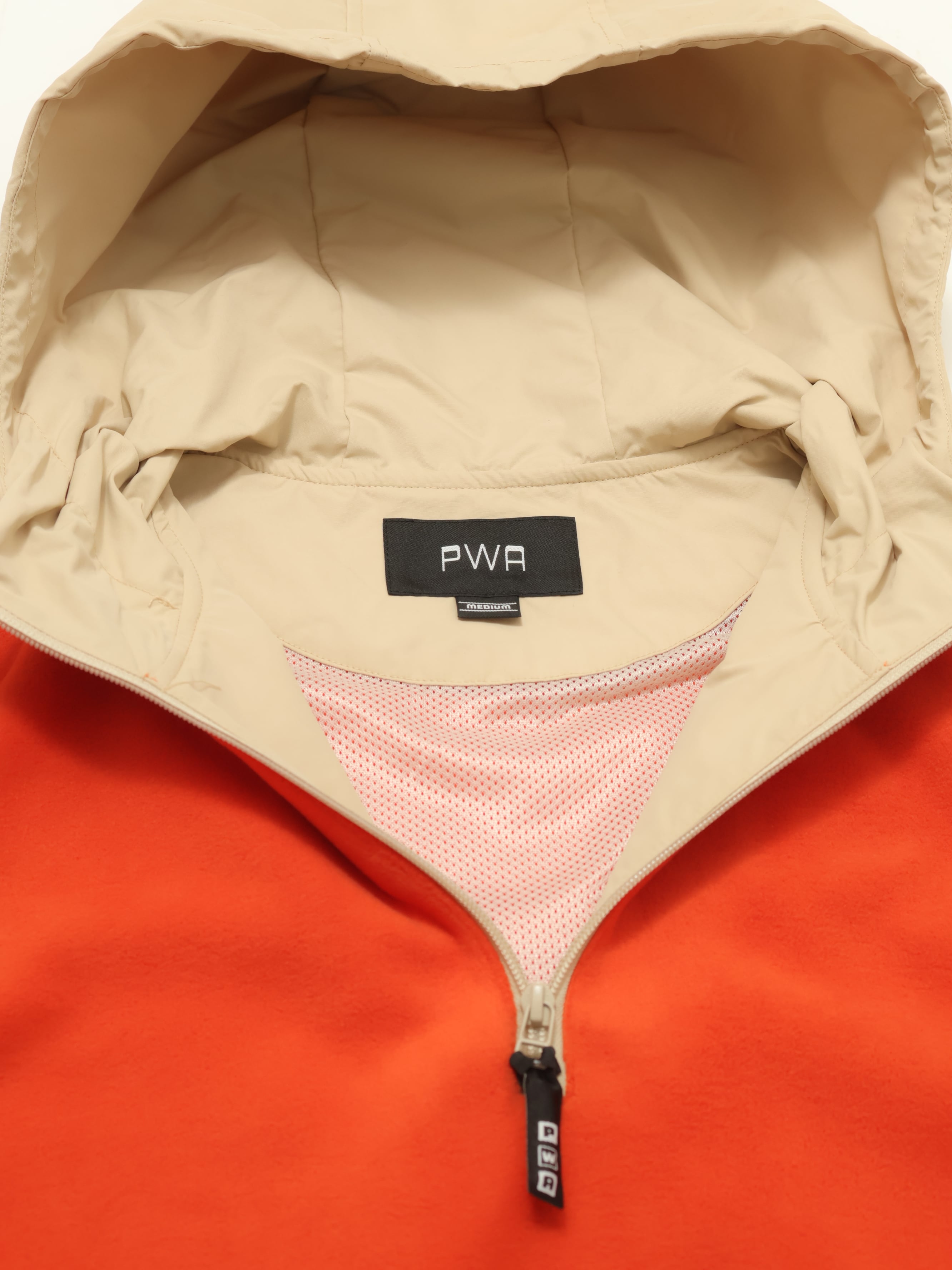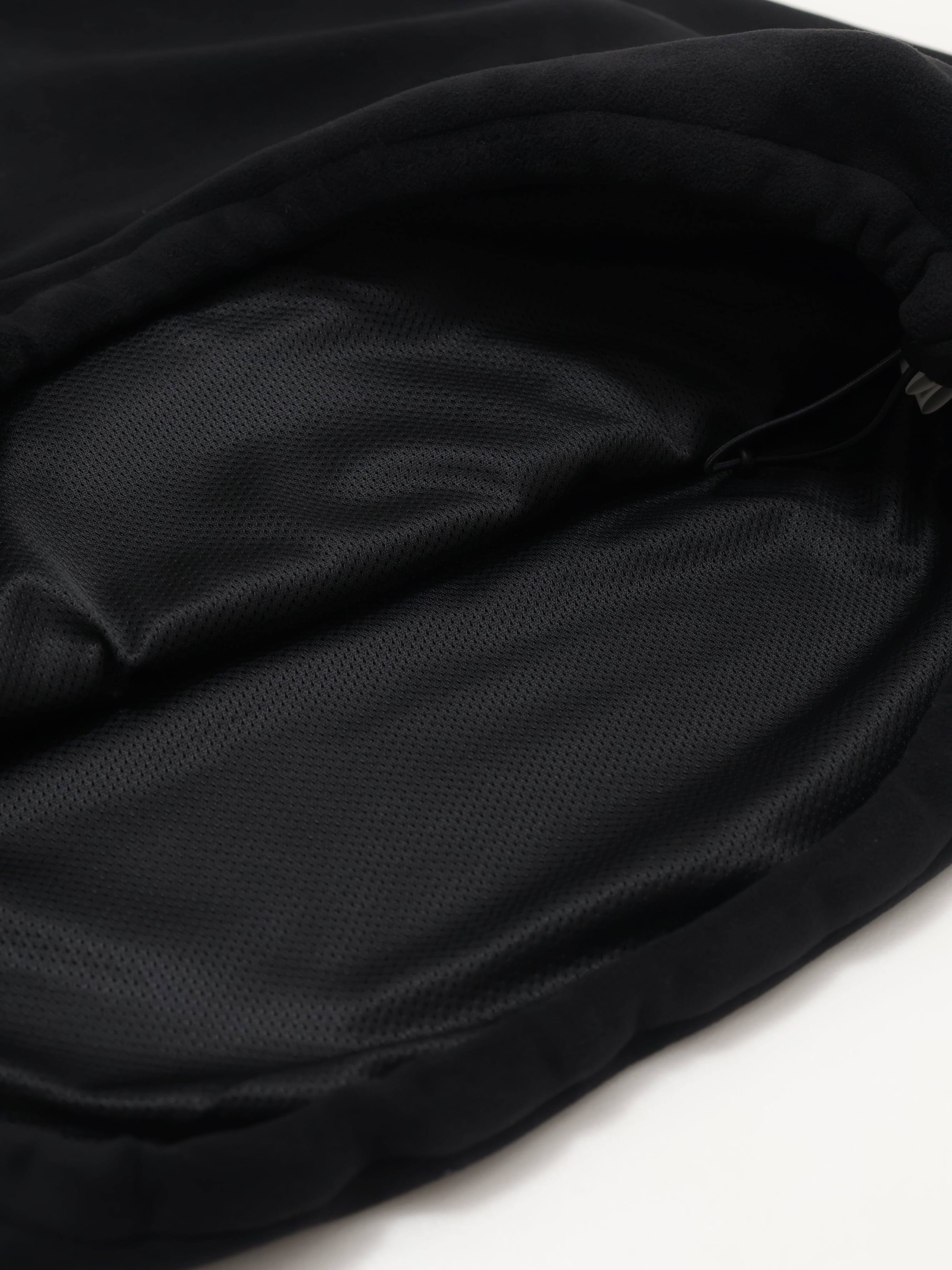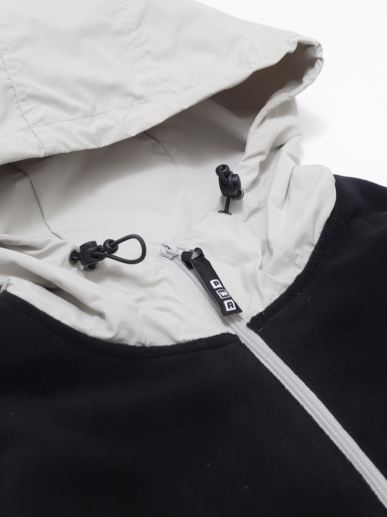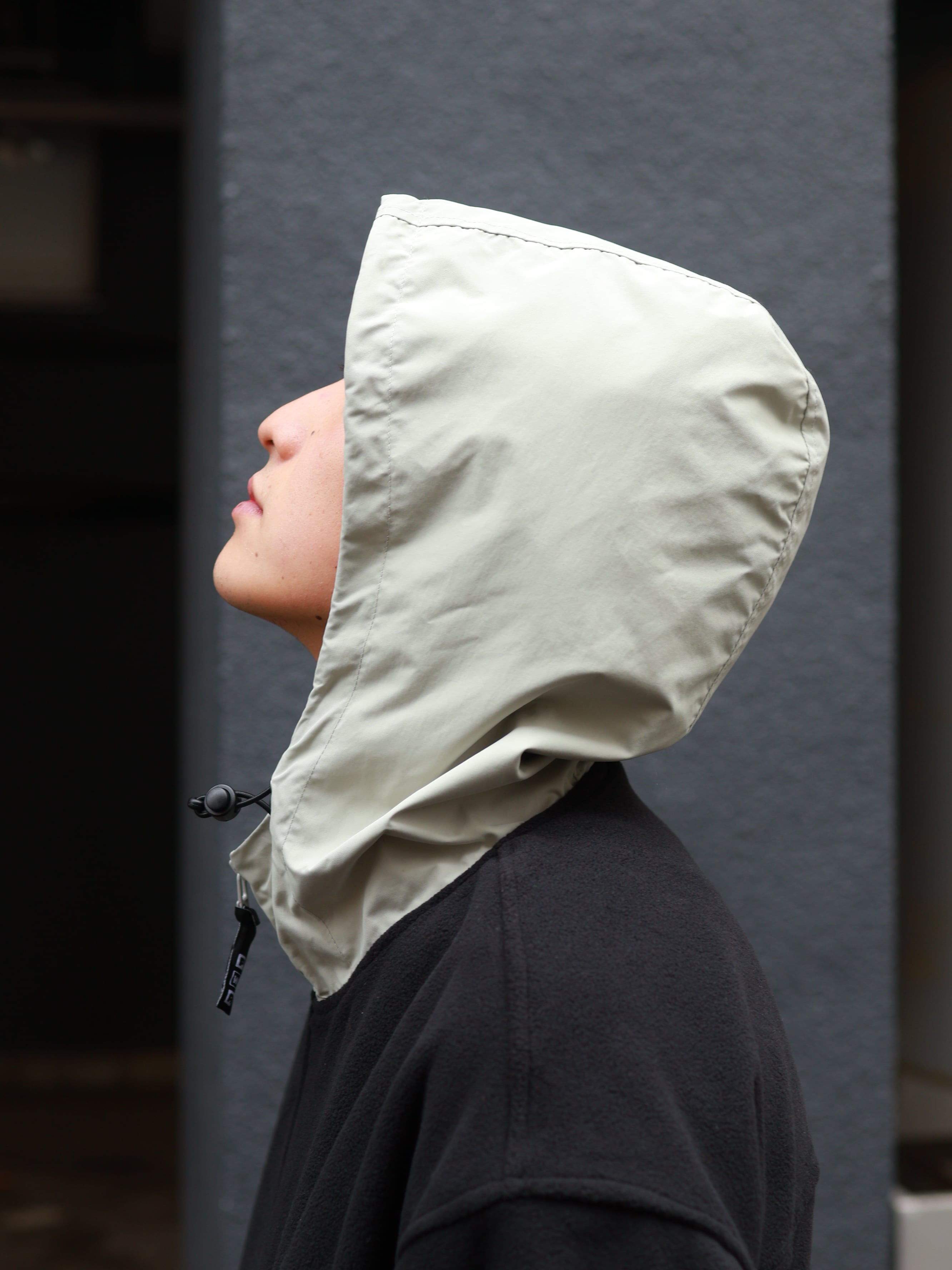 フードと裾にはドローコードがあり、シルエットを変えれる他、風の冷たい北海道ではありがたい雨風を防げる仕様に。
