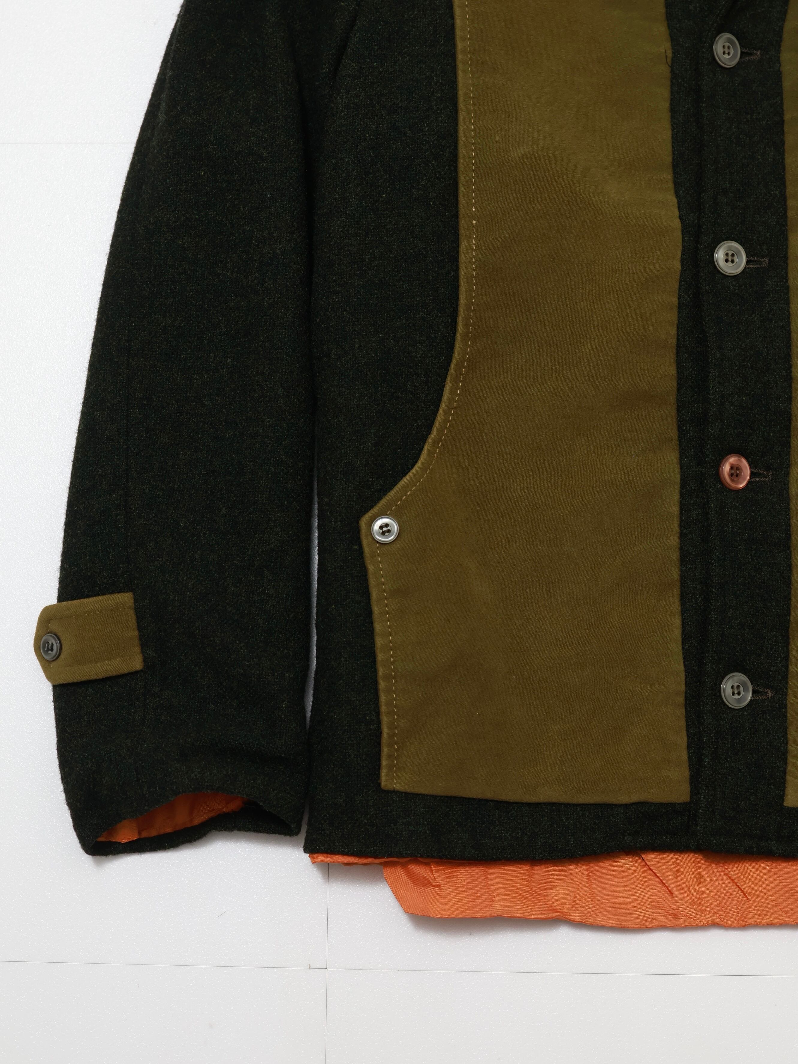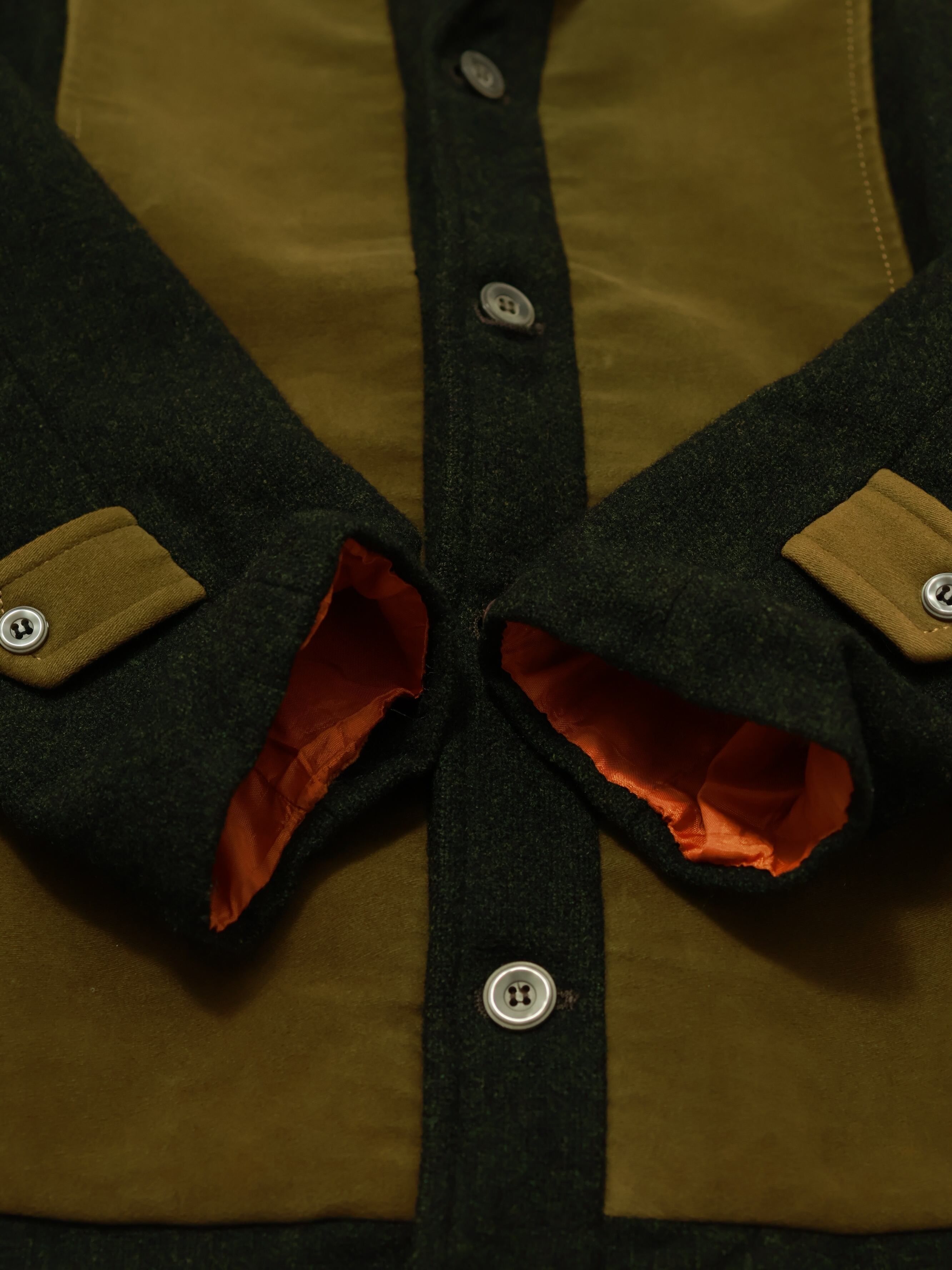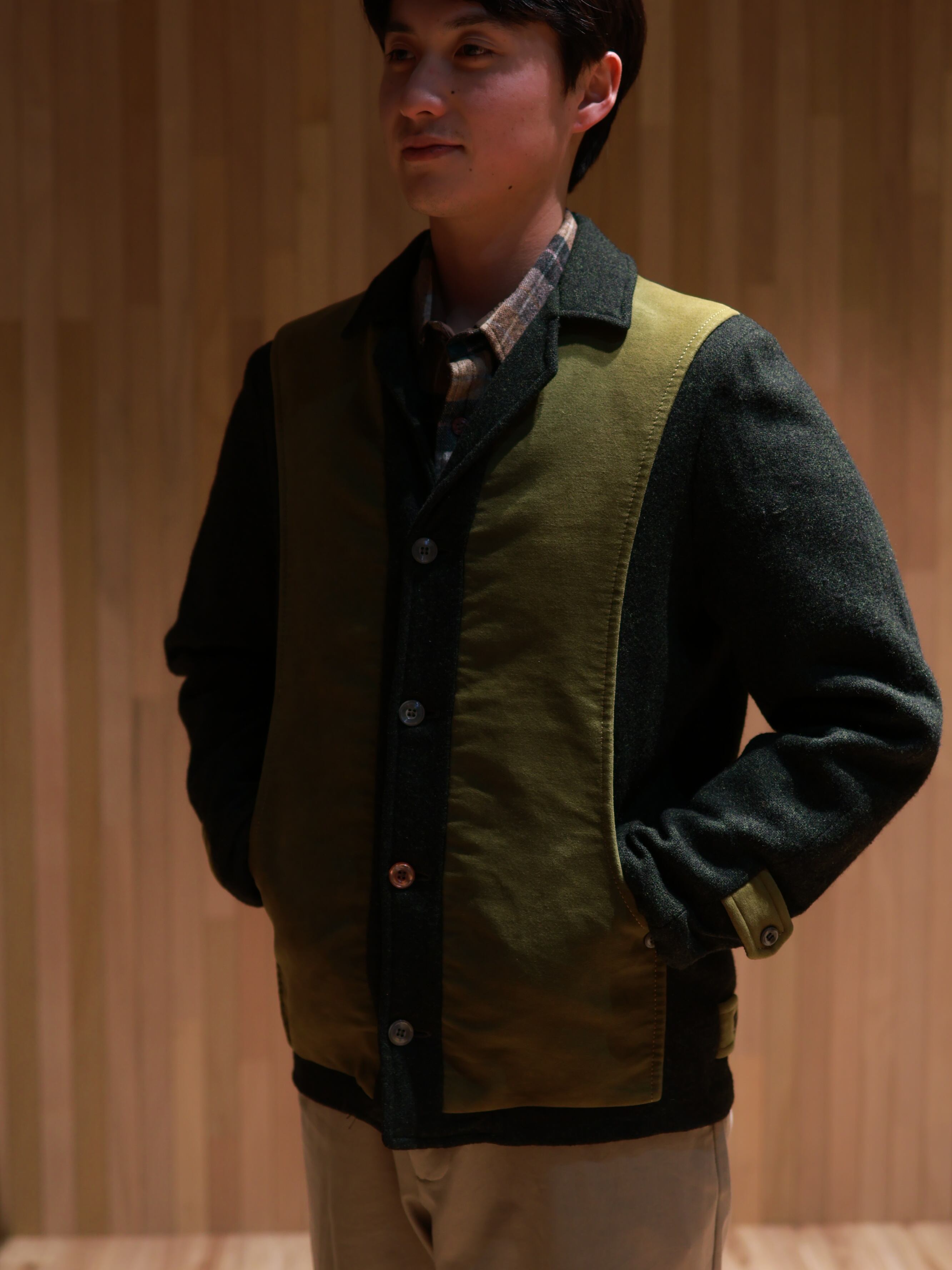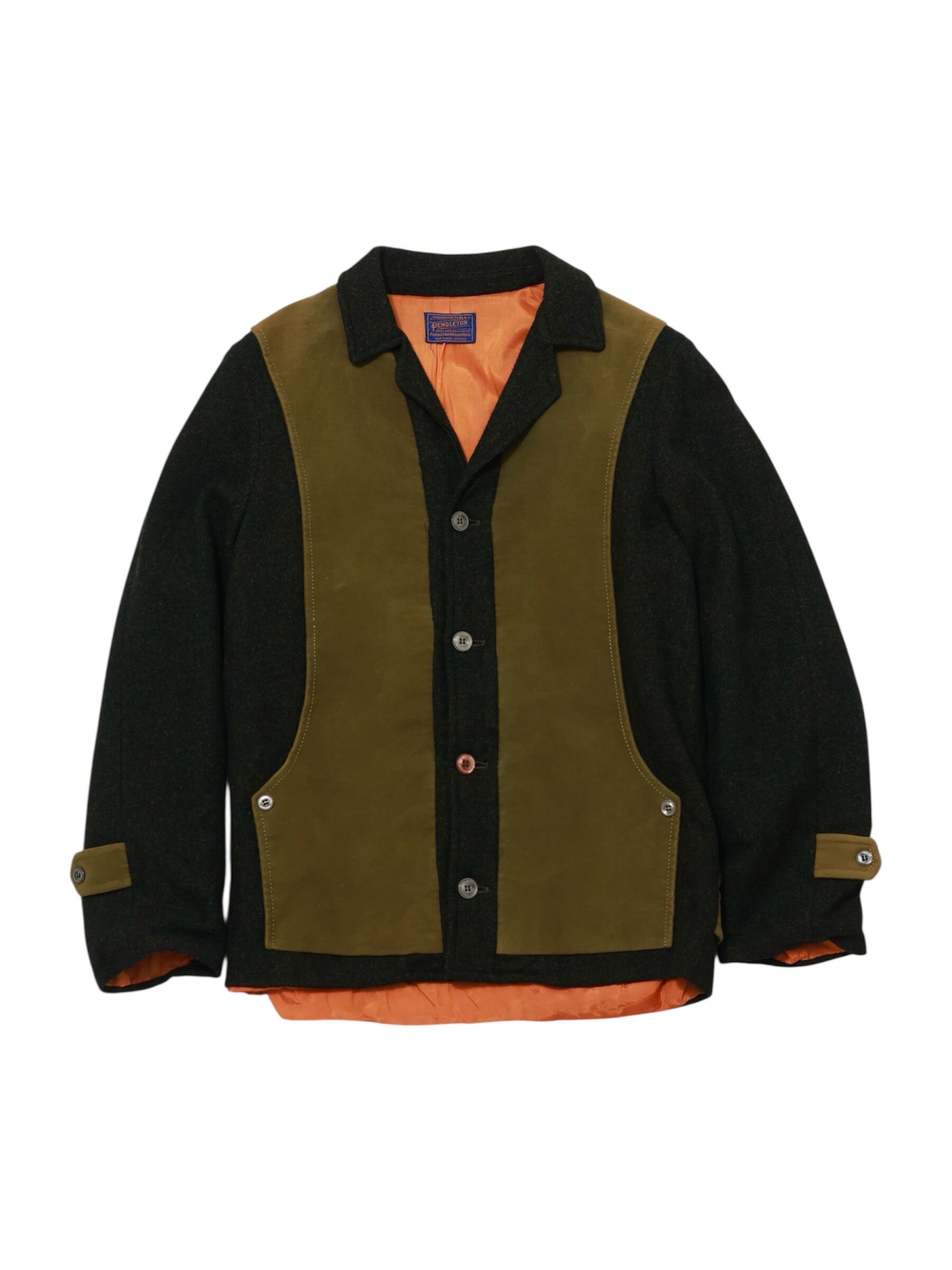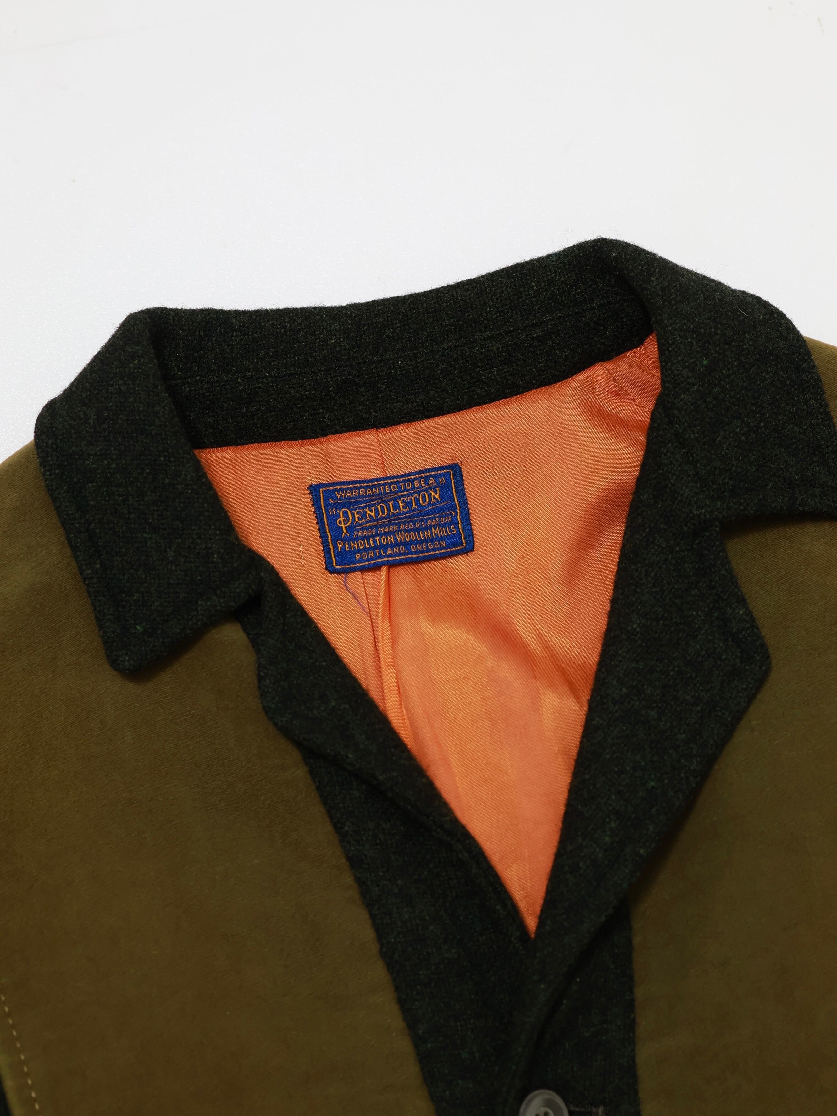 ウールとフェルトのような素材の切り替えが特徴的な40-50’sのPENDLETON。前見頃の大きくカーブしたパネルや、ハンドポケットのディテール等、今見ると新鮮なクラシカルな仕様が魅力的。年代を考えると驚くほどにコンディションが良く、ウールの膨らみや色味も綺麗に残ったままです。