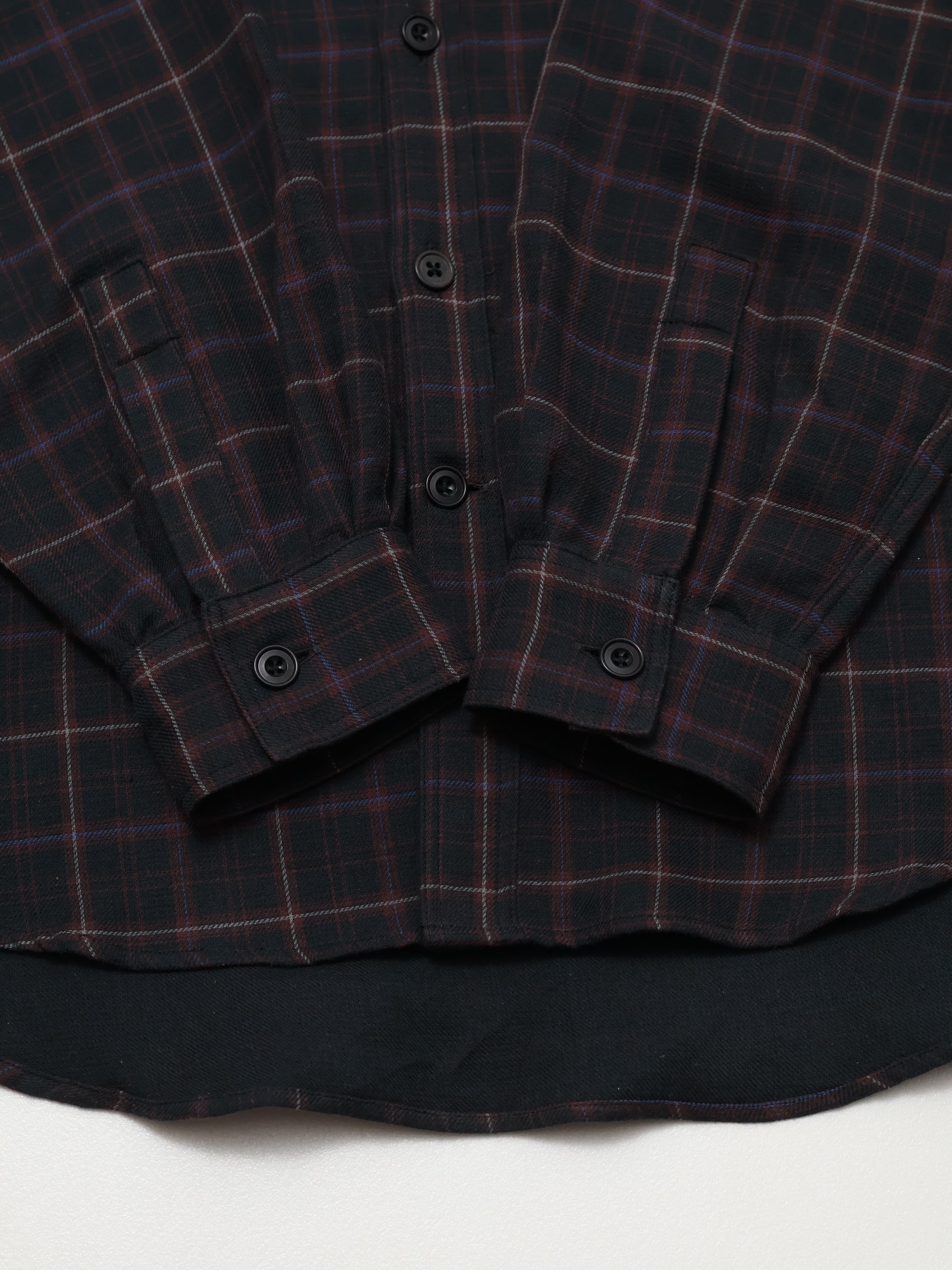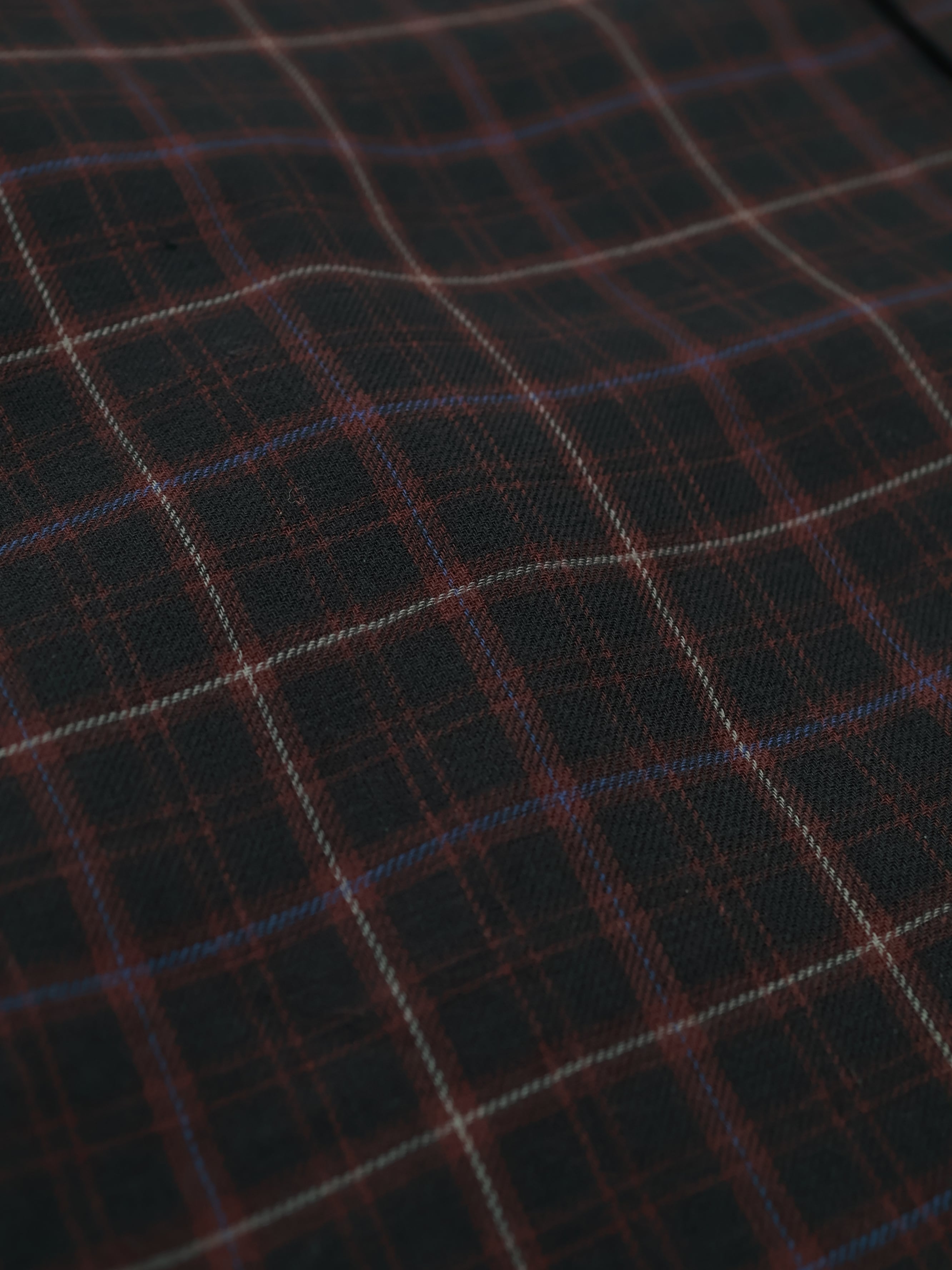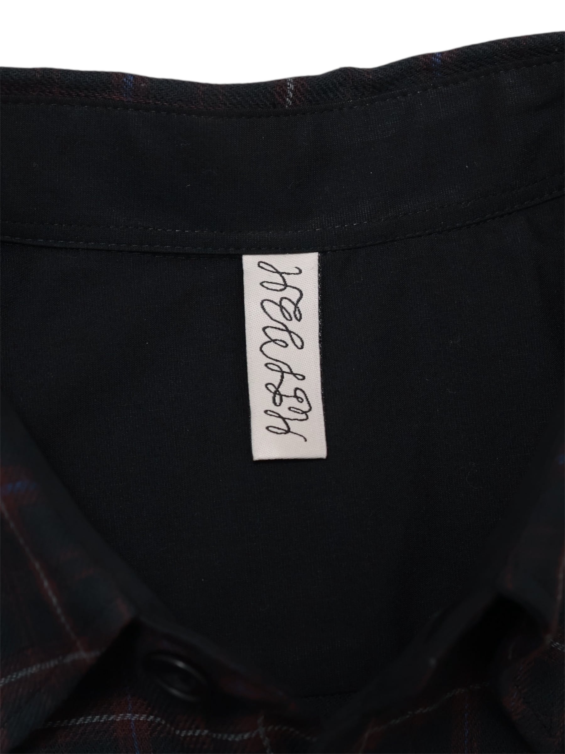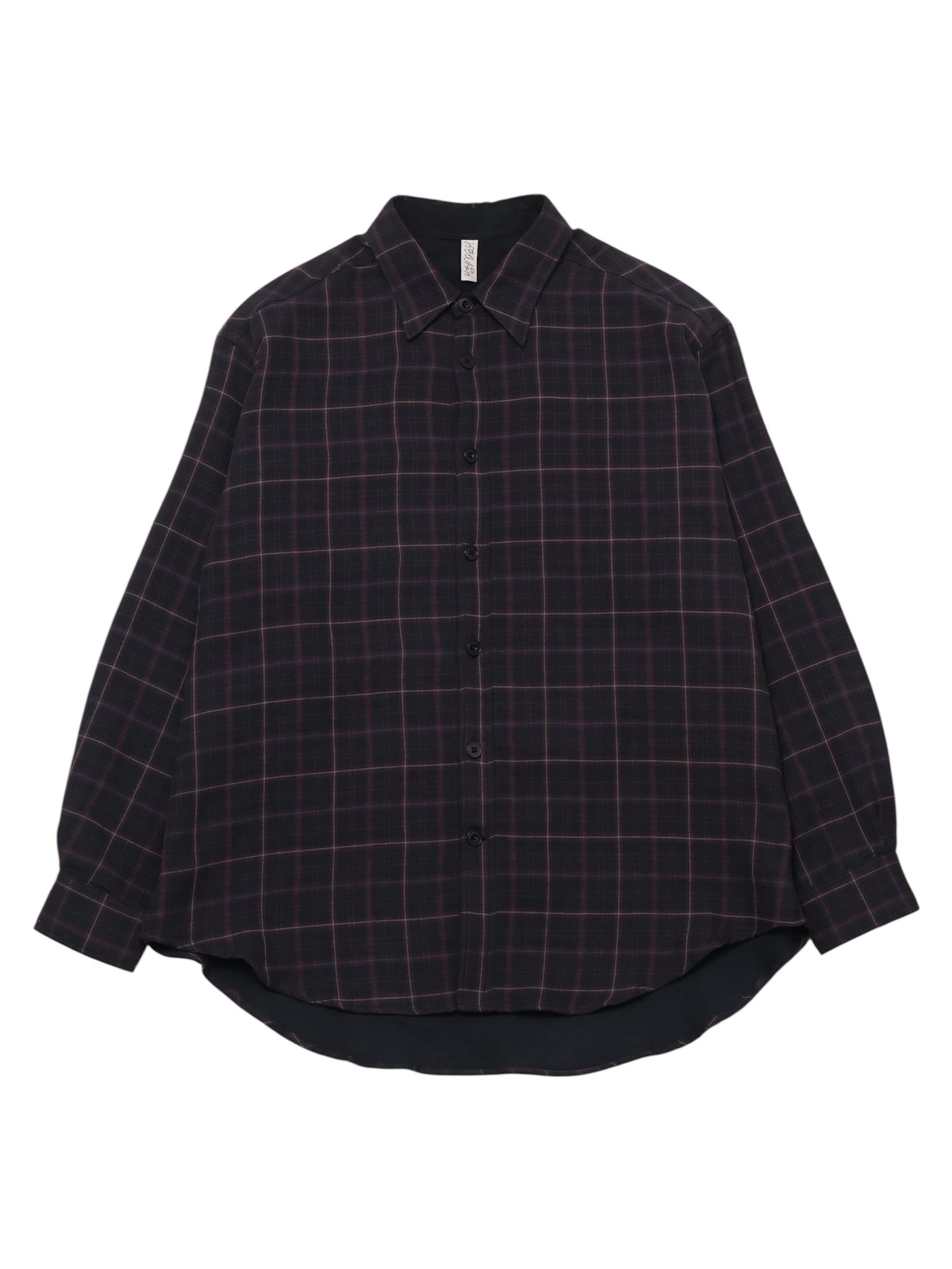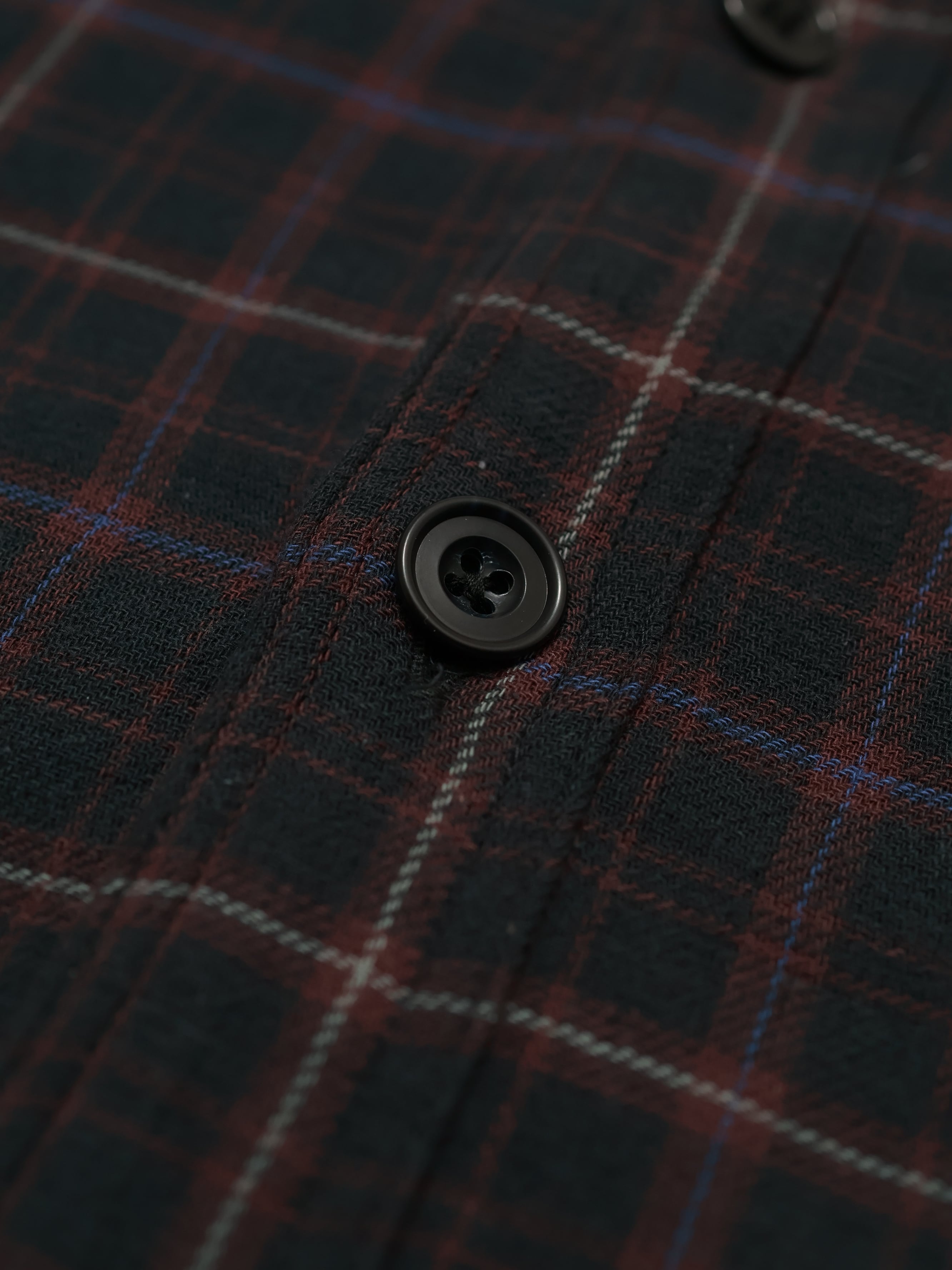長袖の定番レギュラーシャツ。ゆったりとした着やすいワイルドシルエットはそのままに、今回は胸ポケット無しの仕様です。播州(西脇)で賃織り(家内工業)を営む機屋のデッドストックです。山奥の倉庫にて発見されました。播州織は50年代後半より90年代以前までは60%を輸入用に織られていたこともあり海外向けの配色やデザインは大変興味深いものがあります。80〜90年代のMADE IN USAの古着のシャツによくみられる播州織。C100の安心感のある乾いたタッチが最高です。