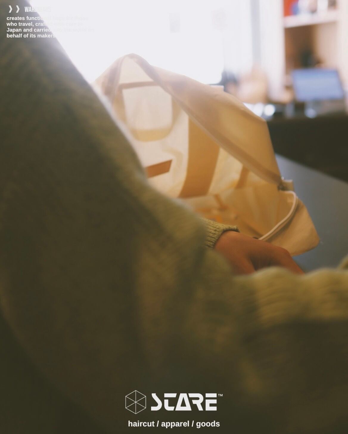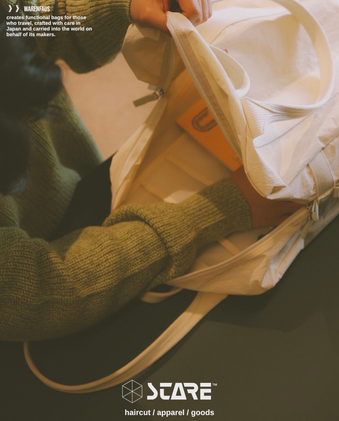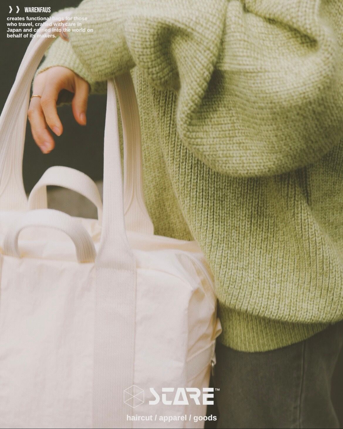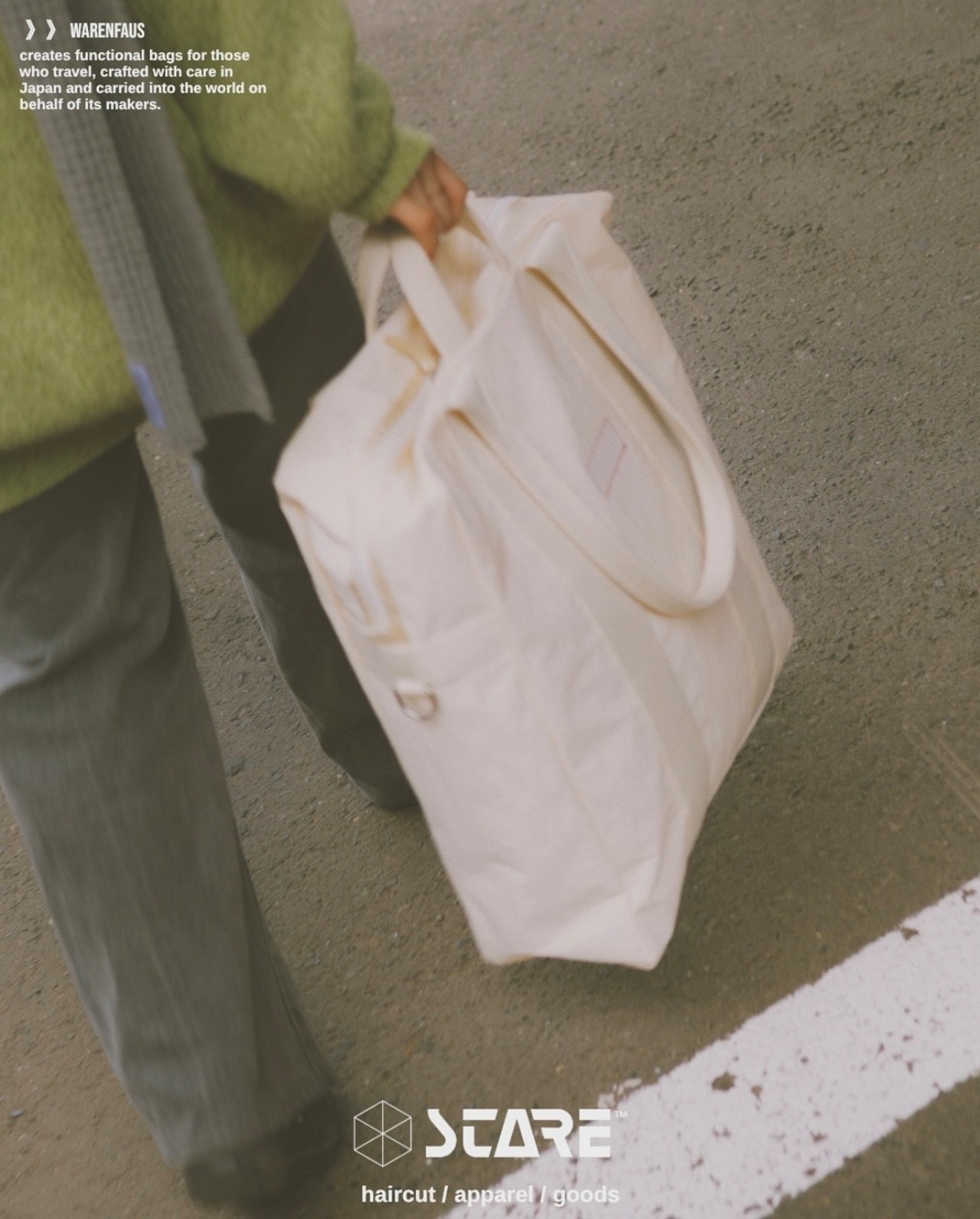 米軍パイロットが使用していた“Flyers Kit Bag“から着想を得たトートバッグ。高密度ナイロンにKONBU加工を施し、まるで天然素材のようなよ表情に仕上げています。