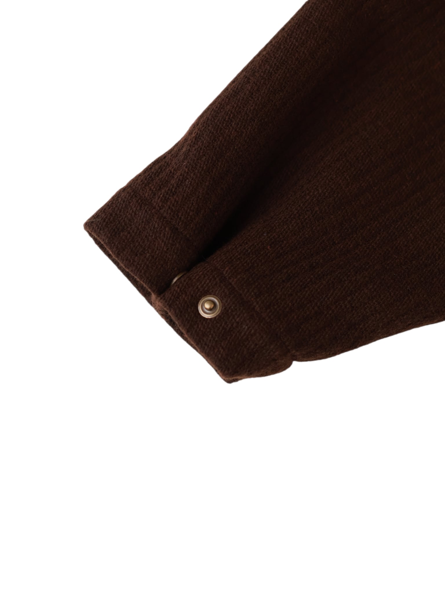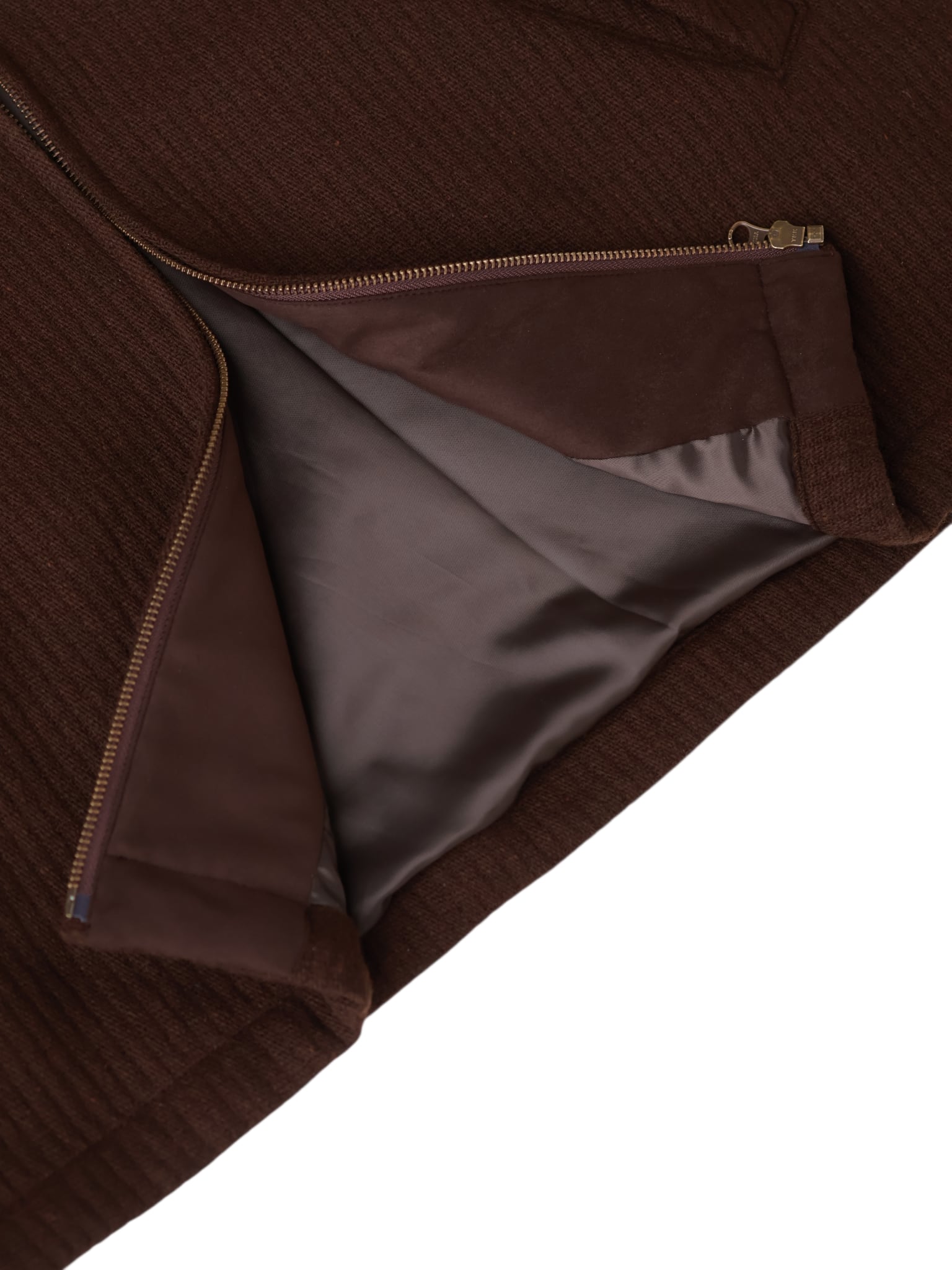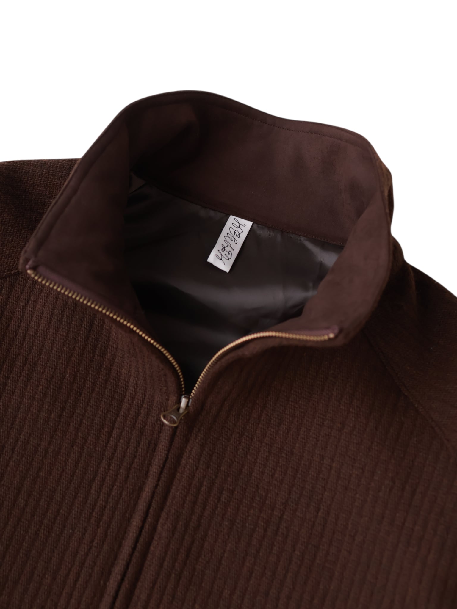 太畝が特徴的な温かみのあるふっくらとしたウール生地です。裏地にはイタリア製のカシミヤ風スエードのポリエステル記事を使用しています。