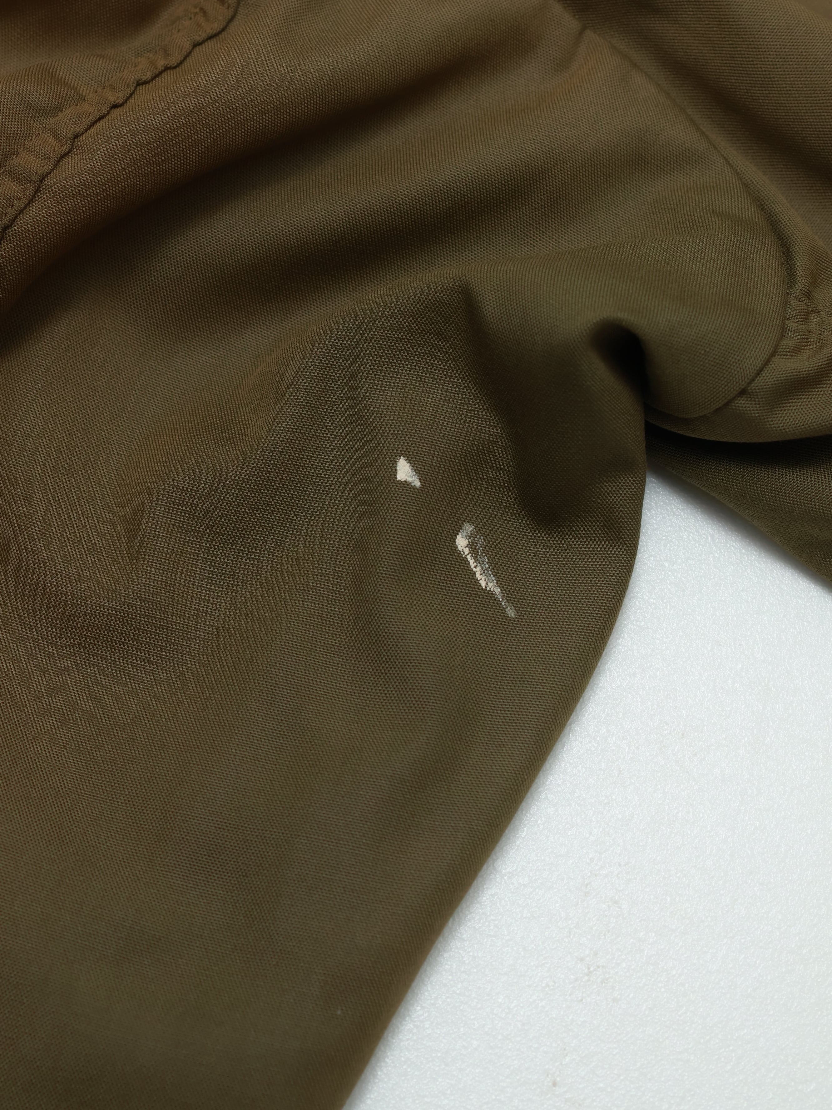 両手首のリブ部分にほつれ、左脇下にペンキ汚れがございます。写真7,8.9枚目をご確認ください。