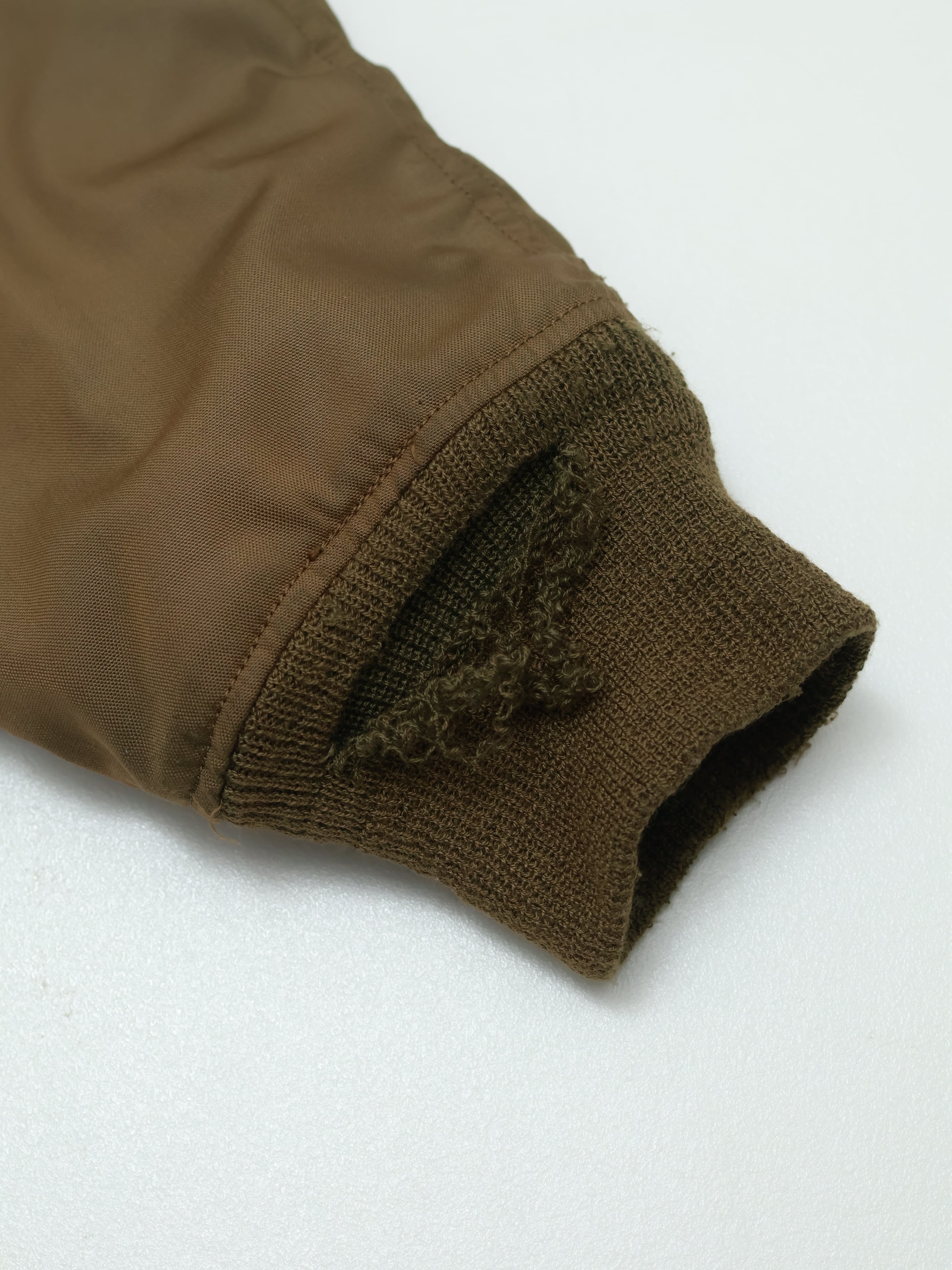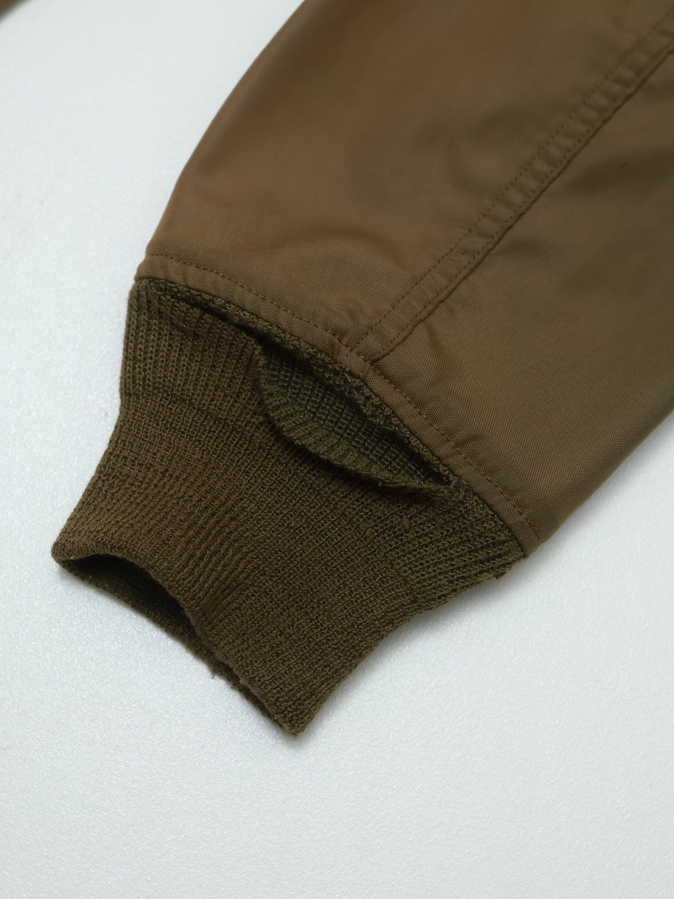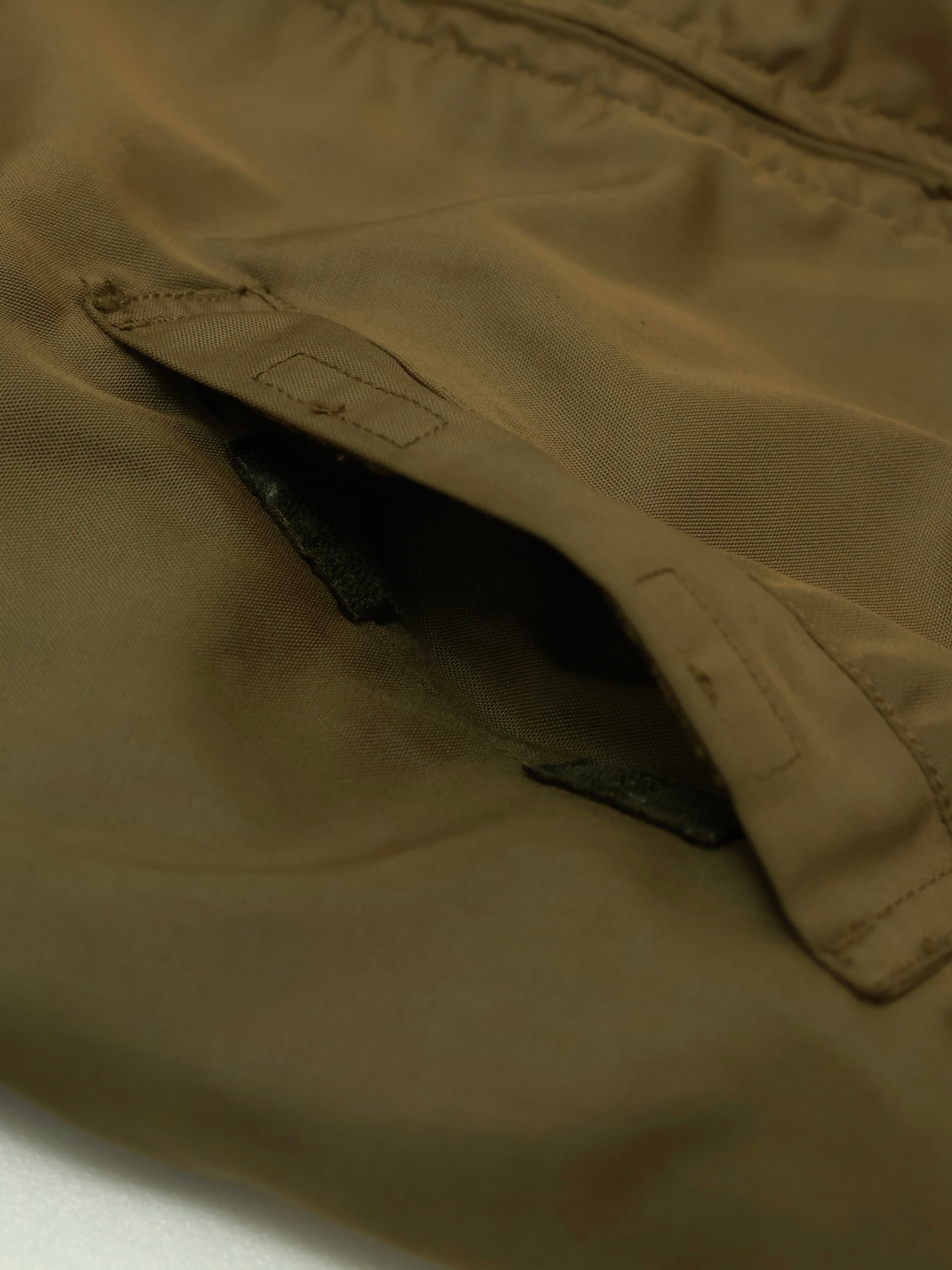 ナイロンシェルに、袖のシガレットポケット、リブ仕様の袖口と裾など、ミリタリーらしい機能的なディテールが特徴。