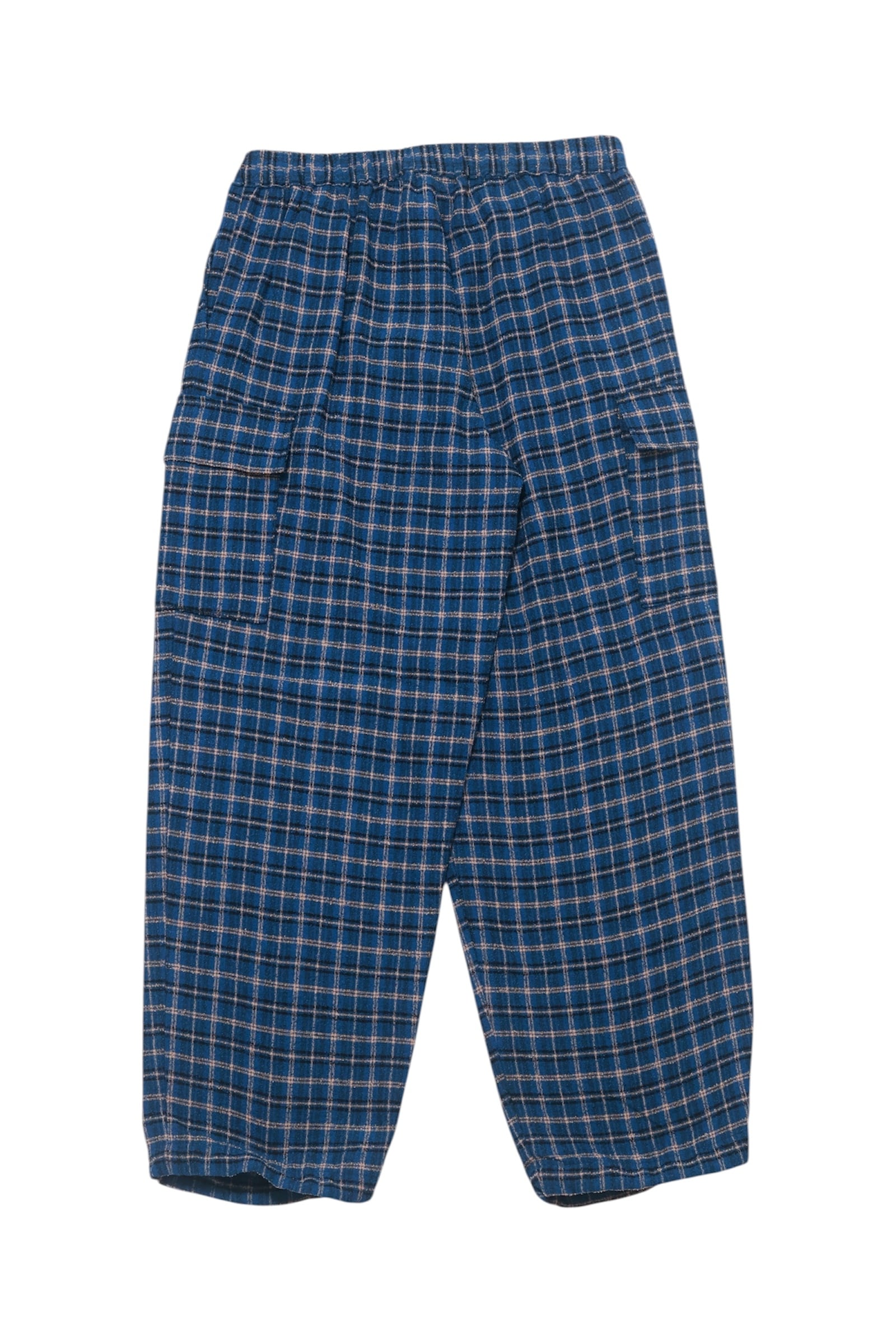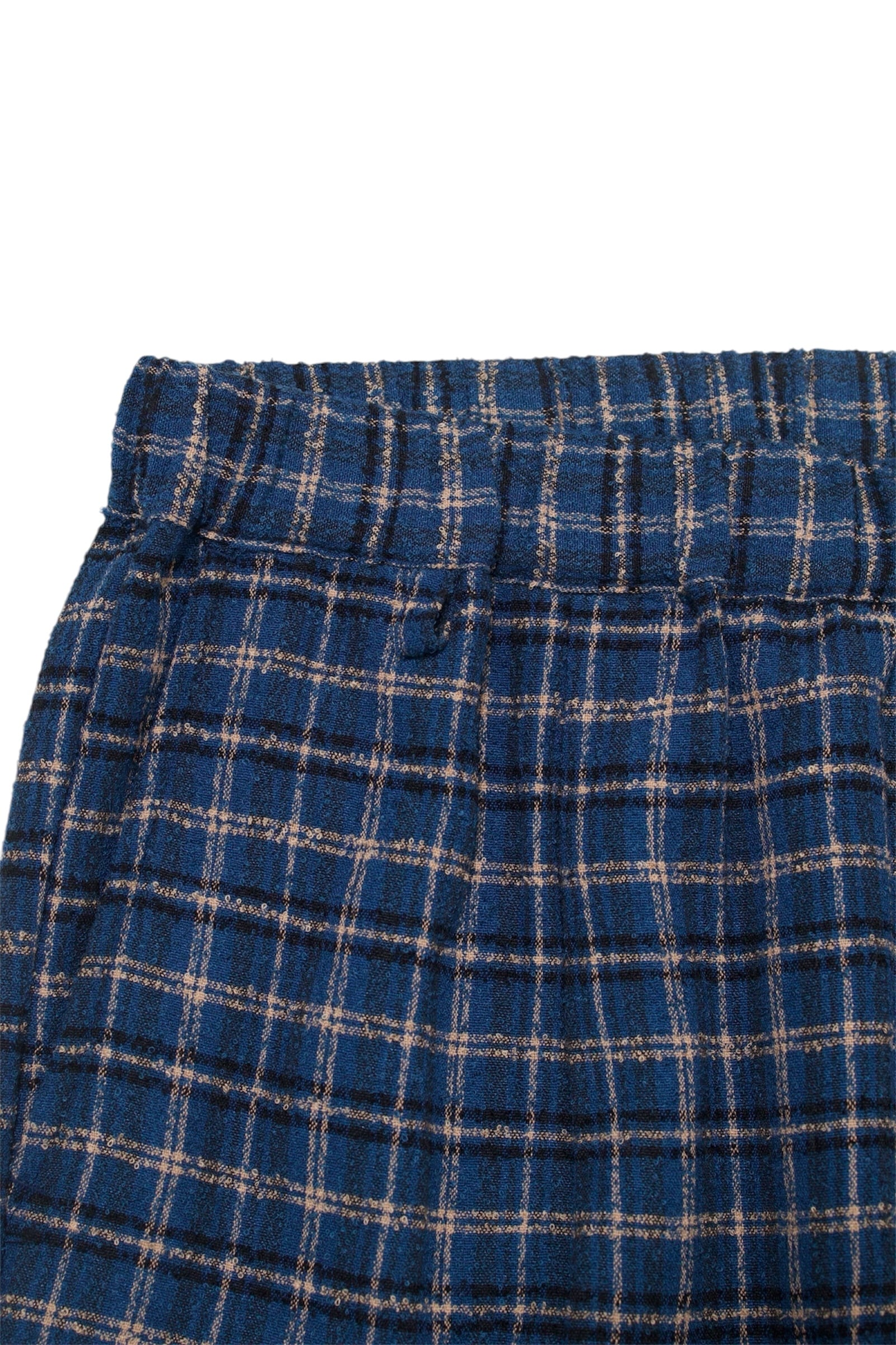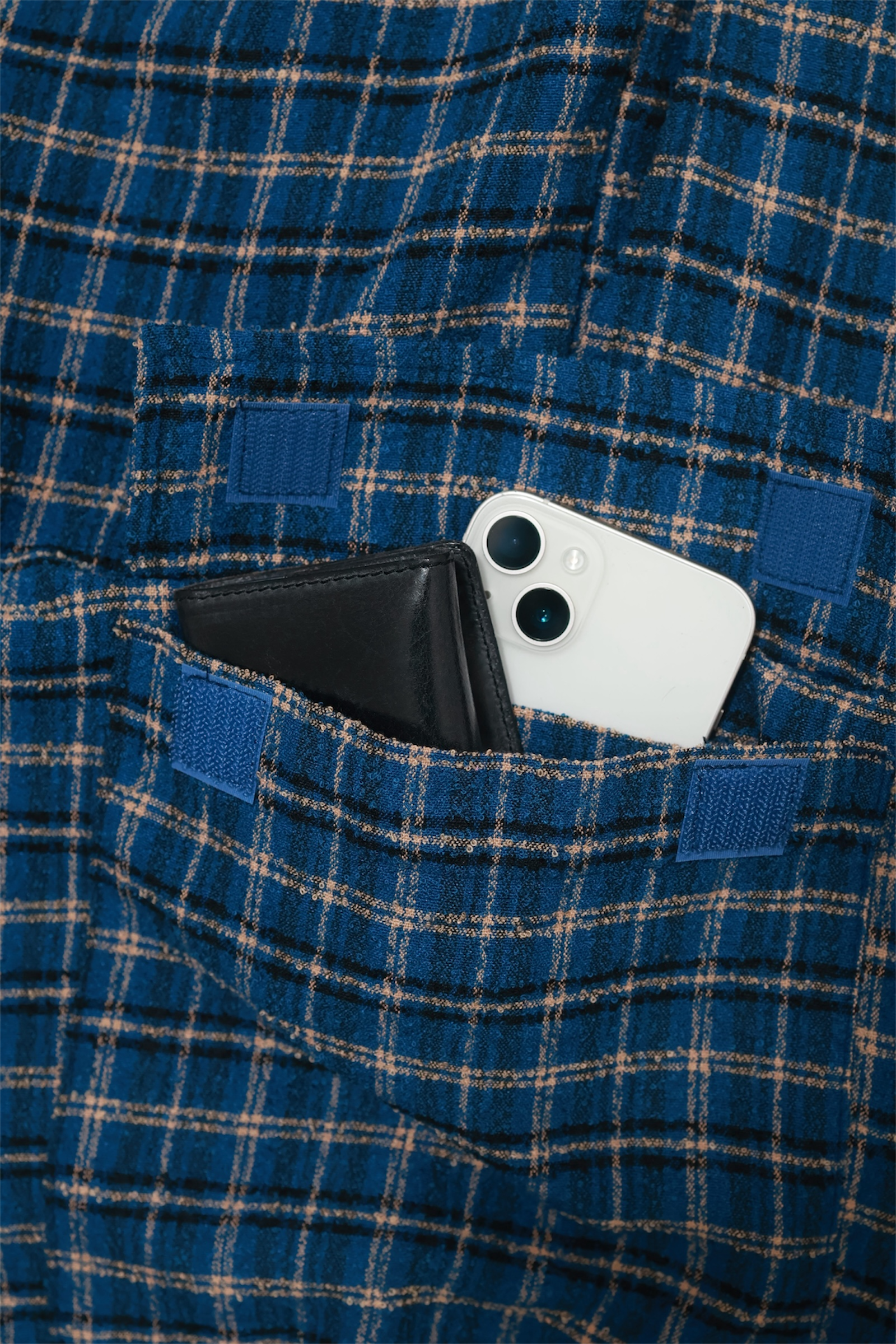 生地は化繊ベースの先染めチェックで、軽く柔らかい見た目と裏腹に、タフな生地でガシガシ使用することが可能。先染め生地には珍しくネップのある表情が特徴的。